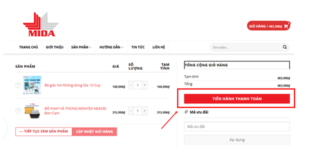 Bước 1: Chọn nút Tiến hành thanh toán