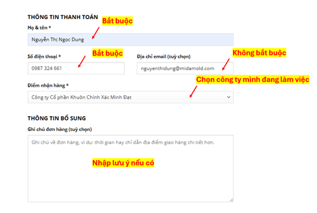 Bước 3: Chọn nút Đặt hàng
