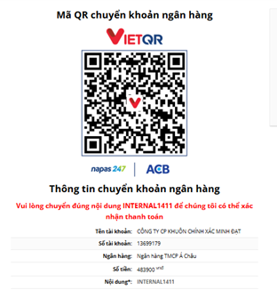 Lưu ý: Chỉ có 1 hình thức thanh toán là chuyển khoản