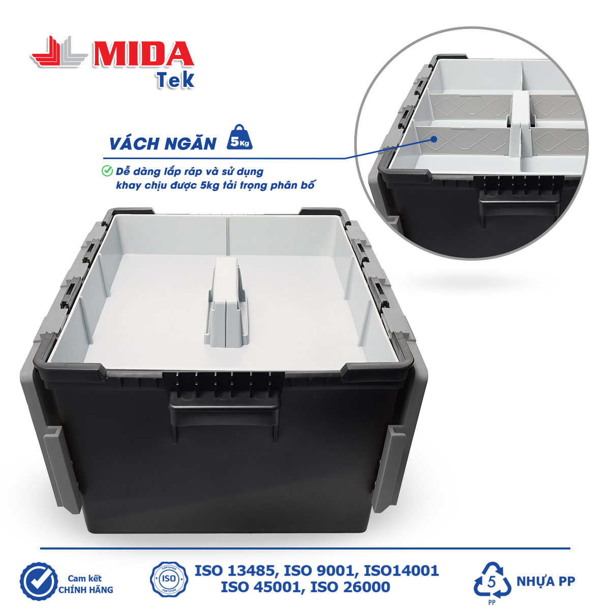 Công năng sản phẩm khay và thùng MIDATEK KB4030 Đen Xám