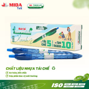 Bút bi xanh dương MIDATEK 3 cây/ hộp, nguyên liệu nhựa tái chế
